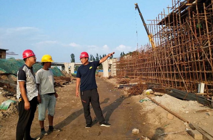 蒙山大街與濱河西路互通立交工程涵蓋橋梁工程和道路工程兩個部分,是四公司近些年來承建的難度較大的一項橋梁工程。該工程建設任務重,施工難度大,公司領導高度重視,委派李素偉為項目經(jīng)理。有人勸他不要接這“燙手的山芋”,可他卻說:“我是一名黨員,沖鋒在前是每個黨員干部義不容辭的責任?!睉{借這樣的擔當和勇氣,他不畏艱難,勇挑重擔,迅速組建項目部,第一時間帶領施工人員進場施工。進場后,他主動協(xié)調(diào)各方關系,上午到濱河公園產(chǎn)權(quán)單位,協(xié)調(diào)苗木遷移問題,下午趕赴設計院協(xié)調(diào)地勘與圖紙設計工作,為工程推進贏得了寶貴時間。施工中,為全面推進工程進度,他充分利用一切資源,采取“多點開花,重點投入”的施工方式,提高工作效率。同時,為避免地下管線施工與其他工序沖突,他安排技術(shù)人員對現(xiàn)狀地下管線進行詳細摸排,及時確定煤氣、自來水、國防光纜等管線的準確位置,并將相關數(shù)據(jù)提供給設計院,為工程后續(xù)施工奠定了堅實的基礎。