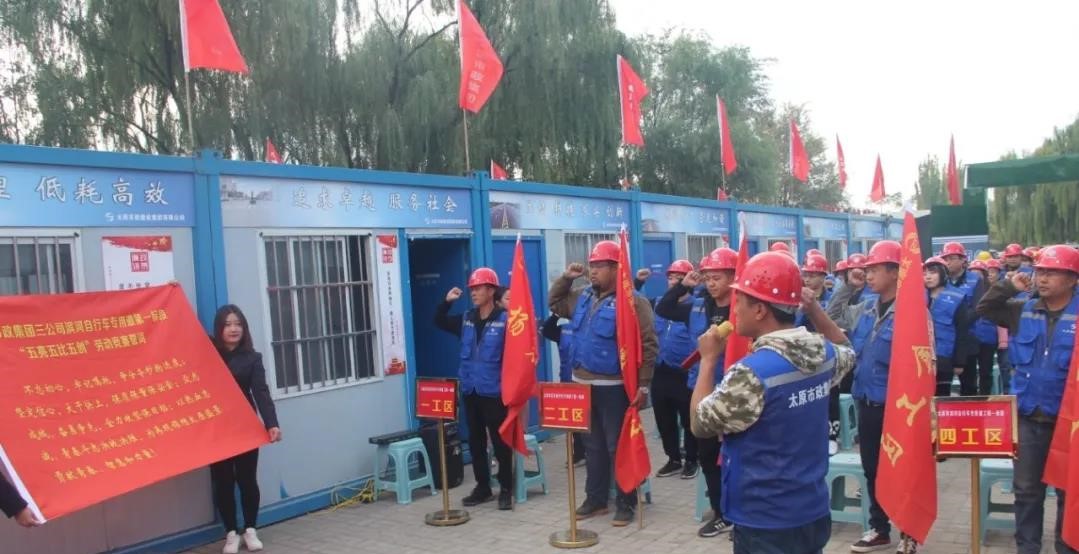 會上,三公司經(jīng)理栗建軍介紹了濱河自行車專用道工程一標(biāo)段工程概況及施工進(jìn)展情況。該工程道路負(fù)責(zé)人、三公司副經(jīng)理柳文斌宣讀了《太原市政集團(tuán)第三工程公司濱河自行車道一標(biāo)段“五亮五比五創(chuàng)”勞動(dòng)競賽實(shí)施方案》。參會領(lǐng)導(dǎo)為以工區(qū)負(fù)責(zé)人姓名命名的5個(gè)工區(qū)授旗,全體參建人員進(jìn)行集體宣誓。集團(tuán)公司勞動(dòng)模范、該工程橋梁負(fù)責(zé)人、三公司副經(jīng)理郝俊軍分享了他的奮斗故事。第七工區(qū)負(fù)責(zé)人武瑞杰代表各工區(qū)進(jìn)行表態(tài)發(fā)言,表示將自我加壓、勇挑重?fù)?dān),為濱河自行車專用道工程決戰(zhàn)攻堅(jiān)貢獻(xiàn)青春智慧和力量。