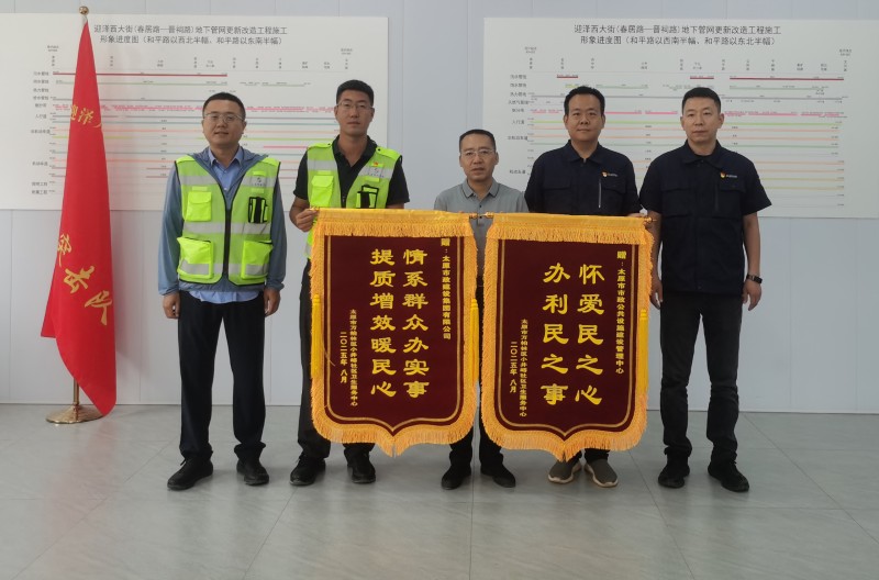 8月29日,太原市政集團收到太原市萬柏林區(qū)小井峪社區(qū)衛(wèi)生服務中心送來的 “情系群眾辦實事 提質增效暖民心”錦旗,感謝太原市政集團在迎澤大街(西段)地下管網(wǎng)更新改造工程以過硬的工程質量和高效的推進速度,高標準開展施工任務,極大改善附近居民的出行條件和生活環(huán)境。