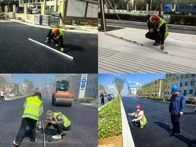 理論與實踐緊密結合,方能彰顯力量。各在建項目部積極響應,組建由項目經理掛帥,工長、質檢員協(xié)同作戰(zhàn)的質量檢查小組。他們攜帶測溫儀、塞尺、鋼直尺等專業(yè)工具,深入施工現(xiàn)場,對道路面層與工程材料展開“地毯式”排查,從路面平整度到材料規(guī)格,不放過任何細微之處,將質量管控觸角延伸至施工現(xiàn)場的每一角落,用實際行動守護工程質量的“生命線”。