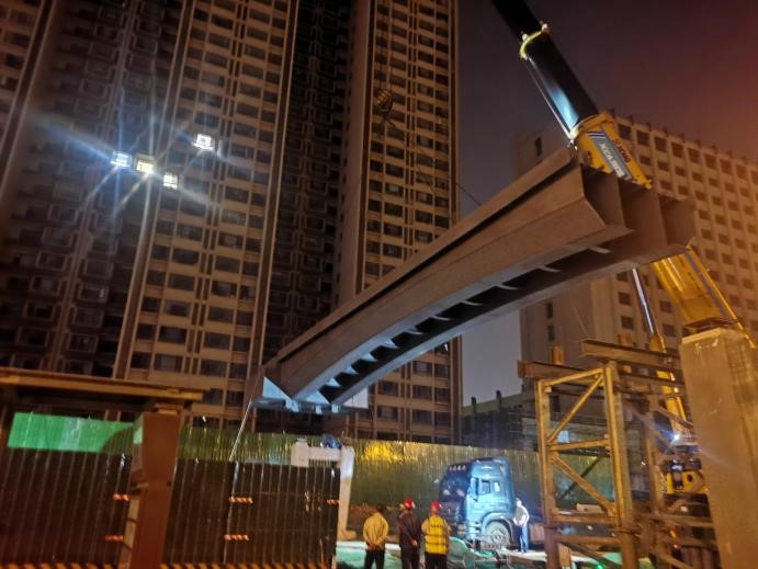 十四項目部承建的文興路匯豐南街人行天橋工期緊、任務(wù)重,項目部科學(xué)組織施工,合理安排工期,于9月16日晚完成鋼箱梁主體吊裝,目前正在進(jìn)行橋面鋪裝作業(yè)。施工中,為保障工程總體進(jìn)度及減小周邊交通影響,項目部決定箱梁運輸及吊裝施工均在夜間實施,并只在主橋鋼箱梁吊裝時全部封閉機動車道。吊裝作業(yè)時,安排專人統(tǒng)一指揮吊裝作業(yè),嚴(yán)格要求吊裝操作人員掌握安全技術(shù)操作規(guī)程及遵守“十不吊”原則,全力保障箱梁吊裝施工安全順利推進(jìn)。同時,由于濱河?xùn)|路翠鑫路天橋所處地段原因,項目部在前期樁頭施工中,采用鋼板樁支護(hù)的方式有效解決現(xiàn)場沙土質(zhì)容易產(chǎn)生塌方的情況,為實現(xiàn)節(jié)點目標(biāo)打下堅實基礎(chǔ),該天橋正在進(jìn)行鋼箱梁焊接施工。