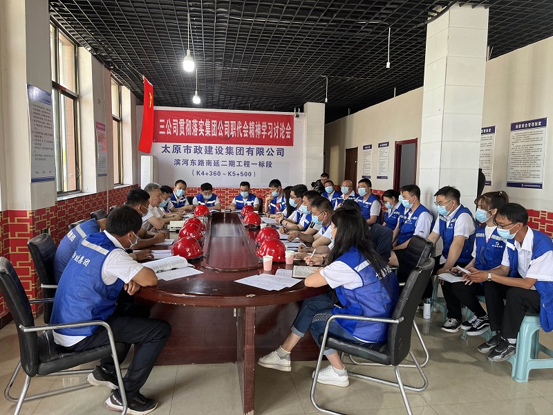 6月15日,三公司在濱河東路南延二期工程施工一標段項目部開展“貫徹落實集團公司職代會精神”學習討論會。集團公司黨委書記、董事長郝東輝應邀參加了學習討論。