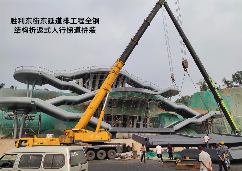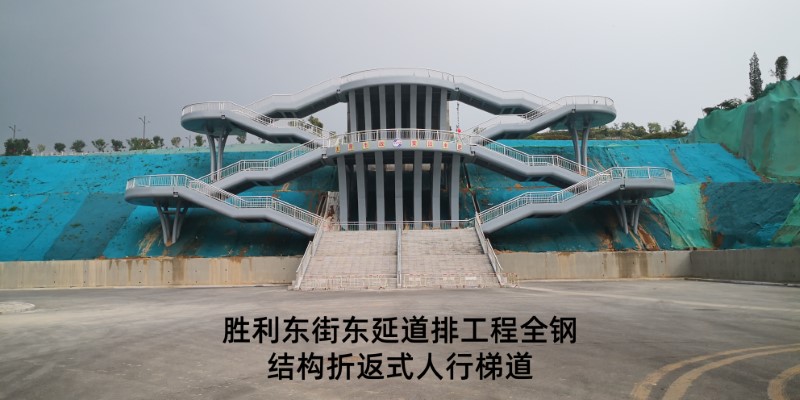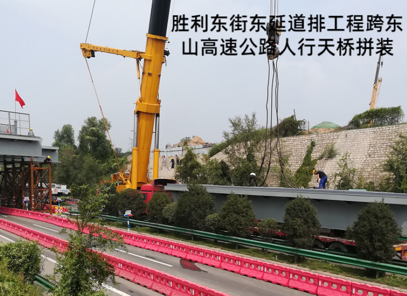 勝利東街東延道排工程起點東中環(huán)路,終點東山高速西側(cè)停車場,施工涉及污水管線、雨水管線、電纜隧道、電力排管、停車場一處,全鋼結(jié)構(gòu)折返式人行梯道一座及長52米,寬15米跨高速人行天橋一座。該工程建成后,成為市民通過橫跨東山過境高速和東峰路的“呂”字型人行天橋,更便捷從市區(qū)前往牛駝?wù)沂苛陥@的一條新線路,八公司全體參建人員先后克服半幅封閉施工、高度落差大、結(jié)構(gòu)工程復(fù)雜等難題,順利完成了跨東山高速公路人行天橋、全鋼鋼箱梁結(jié)構(gòu)人行梯道的施工任務(wù),以“市政實力”打造城市新名片。攻堅戰(zhàn)的硝煙漸漸散去,奮戰(zhàn)的場面依然清晰如昨,市政人甘于奉獻(xiàn)、勇于擔(dān)當(dāng)?shù)木裼忠淮午澘淘谔鞘薪ㄔO(shè)的恢弘畫卷上。