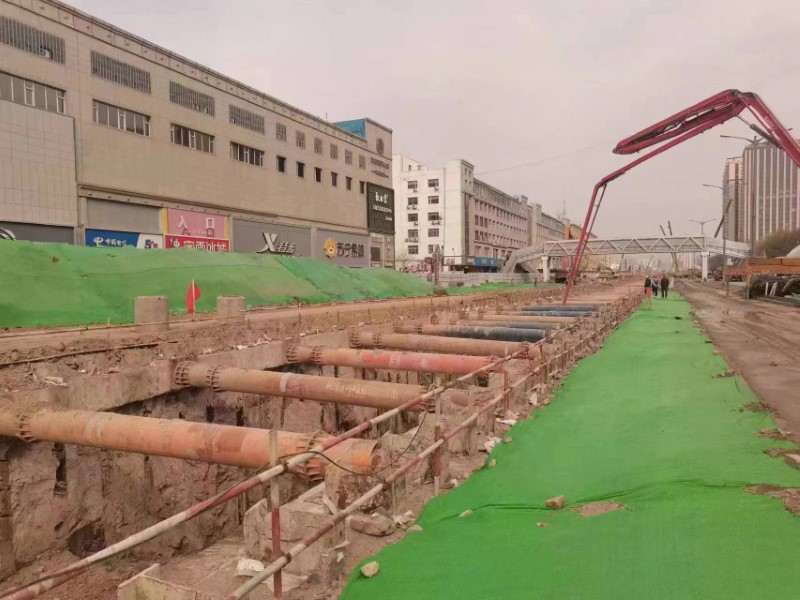 在雨水方涵施工過程中,項目部因地制宜、多措并舉,攻克多個“重難節(jié)點”,確保了管道施工的順利進行。針對文興路口存在兩座暗涵影響雨水方涵的施工問題,項目部與相關(guān)單位認真進行技術(shù)交底,并通過多處開挖探坑,精確暗涵位置,積極與設(shè)計院溝通協(xié)調(diào),最終確定根據(jù)雨水方涵通過暗涵的先后順序,將兩座暗涵采用互相導(dǎo)改的方式,先后彼此接通導(dǎo)流,既滿足了雨水方涵的施工條件,同時又保證了暗涵的使用不受施工影響,確保了雨水方涵施工的順利推進。在污水管道施工中,由于部分路段距離建筑物較近,常規(guī)開挖必然會影響周邊建筑,項目部同設(shè)計院認真溝通協(xié)調(diào),最終對污水管道采用頂管的施工方法進行作業(yè),既節(jié)省了舊管線遷改的時間,同時減小了明挖溝槽對周邊建筑物穩(wěn)定性的影響。