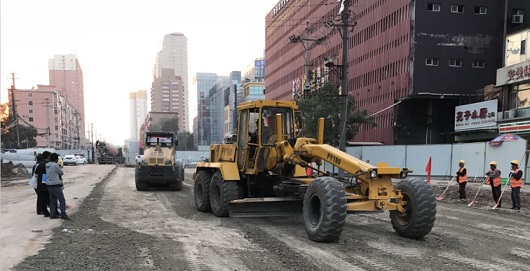 太原市政建設(shè)集團(tuán)有限公司紡織街改造工程水穩(wěn)底基層開始鋪筑