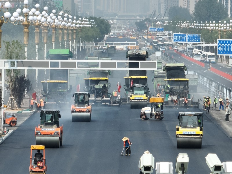 面對(duì)全長4.3公里的施工戰(zhàn)線,租賃公司和路面公司展現(xiàn)了高度的專業(yè)協(xié)作與責(zé)任擔(dān)當(dāng)。租賃公司科學(xué)調(diào)度大量大型機(jī)械設(shè)備,包括銑刨機(jī)、壓路機(jī)和攤鋪機(jī)等,按照施工計(jì)劃分批次進(jìn)場(chǎng),確保了“分段流水、平行作業(yè)”模式的高效運(yùn)轉(zhuǎn)。通過精準(zhǔn)匹配機(jī)械供應(yīng)與作業(yè)面規(guī)劃,他們?yōu)楣こ烫峁┝藞?jiān)實(shí)的設(shè)備保障,同時(shí)嚴(yán)格執(zhí)行機(jī)械操作安全規(guī)程,有效管控高風(fēng)險(xiǎn)作業(yè)環(huán)節(jié)。在機(jī)械設(shè)備充足的同時(shí),路面公司聚焦道路施工的質(zhì)量與精細(xì)化管理。在完成地下管網(wǎng)改造工程后,他們迅速推進(jìn)路面工程施工進(jìn)度,實(shí)施水穩(wěn)、瀝青鋪筑工作。面對(duì)高溫和雨季的持續(xù)挑戰(zhàn),路面公司施工人員堅(jiān)守一線,嚴(yán)格把控每道工藝,以精益求精的施工質(zhì)量和爭分奪秒的施工速度圓滿完成施工任務(wù),完成全線水穩(wěn)和瀝青的攤鋪工作。租賃公司和路面公司通過與施工單位的緊密配合,展現(xiàn)了同心協(xié)力、協(xié)同作戰(zhàn)的施工風(fēng)采,助力迎澤大街(西段)煥新升級(jí),彰顯了太原市政集團(tuán)的專業(yè)水準(zhǔn)與責(zé)任使命。