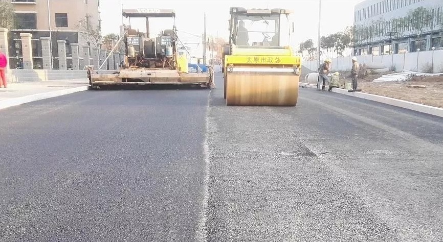 6月11日,太原南站東廣場(chǎng)配套路網(wǎng)工程光明東街與北營(yíng)南路工程下面層瀝青攤鋪已全部完成。