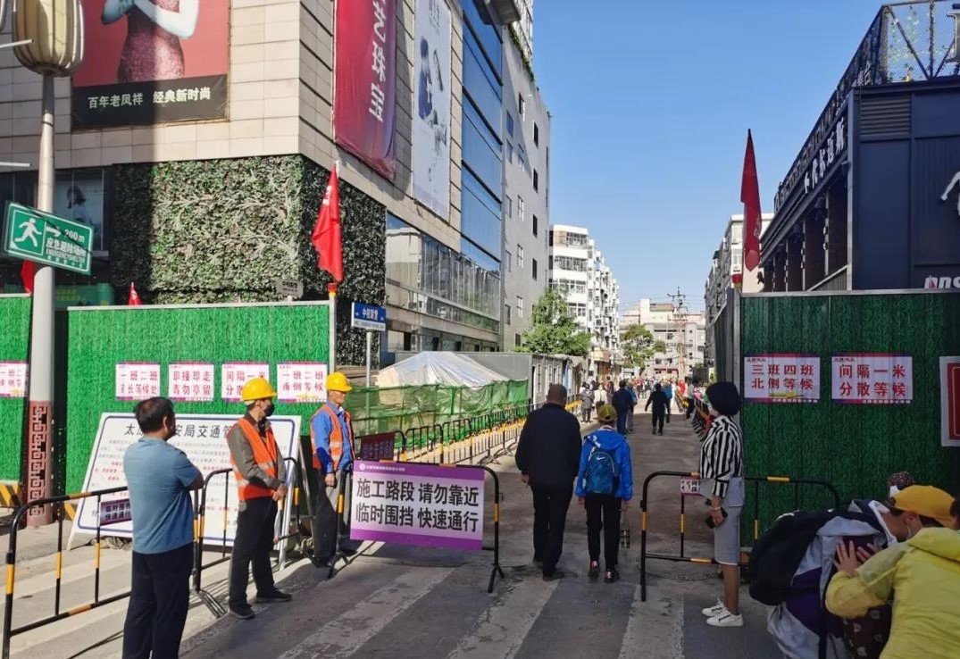 地下管線錯綜復(fù)雜、作業(yè)面狹窄、人流量較大無法封閉施工……為保障工程按時完工,五公司、十四項目部全體施工人員晝夜奮戰(zhàn)、人工作業(yè),全力推動施工進(jìn)展。