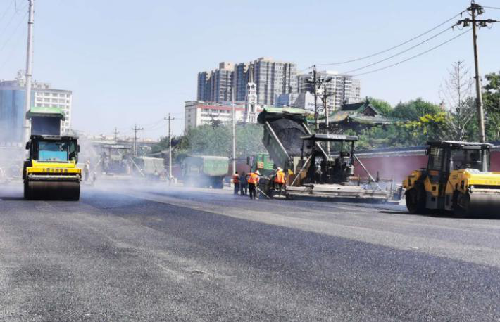 8月13日早上9點,隨著攤鋪機的隆隆聲響,二公司承建的解放路改造工程二標段開始中面層瀝青混凝土的攤鋪工作。在施工現場,攤鋪機齊頭并進,壓路機來回穿梭,運料車在工作人員的指揮下,正在有條不紊地進行作業(yè)。項目部全體施工人員分工明確,測量人員手持水準儀,對路面標高精準測量,提前測算出鋪設厚度;質檢員頭頂烈日,用測溫計等設備,監(jiān)督鋪設的溫度和厚度,并對瀝青樣品抽樣檢驗,精細把控工程質量;現場施工人員充當臨時交通員,疏通運料車,維護周邊行人秩序,確保攤鋪工作的順利進行;材料員盯守施工現場,隨時聯(lián)系供料方,確保瀝青料的及時供應……