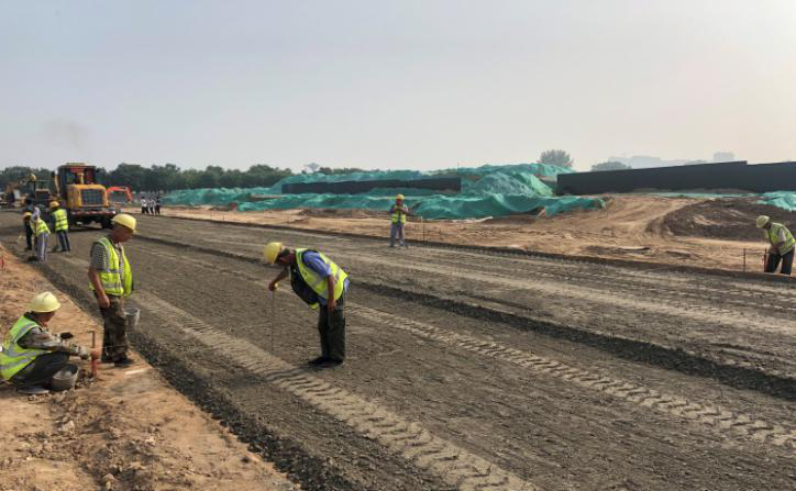 8月14日下午2點,由八公司承建的迎新西一條等五條道路改造工程迎新西一條(迎新北三巷~迎新北二巷)施工現場一派熱火朝天的繁忙景象,一臺臺平地機、壓路機和鏟車正各司其職,正配合施工人員進行第一層水穩(wěn)的施工作業(yè)。施工現場,安全員堅持現場巡查,及時排查安全隱患;測量員盯在現場,運用全站儀進行測量放線、復核工作,準確確定攤鋪層中線及邊線,不斷檢測攤鋪和碾壓后的標高,及時糾正施工中的偏差;質檢員全過程堅守現場,現場取樣測定灰計量,不間斷地對攤鋪厚度和寬度進行測量,測定水泥穩(wěn)定基層壓實度,認真填寫自檢記錄;施工員及時協(xié)調現場施工問題,合理安排施工機械和施工人員,時刻關注攤鋪情況,確保水穩(wěn)攤鋪平整、碾壓到位;材料員對進場材料嚴格把關,保證水穩(wěn)料及時供應,整個攤鋪過程銜接有序、進展順利。下一步將進行其他路段水穩(wěn)鋪設工作。鏡頭下,記錄的只是短短一個瞬間;鏡頭外,集團公司全體施工人員戰(zhàn)高溫冒酷暑,加班加點加緊施工。他們的每一滴汗都融進了腳下的道路,他們用“奔跑的速度”詮釋“市政力量”。