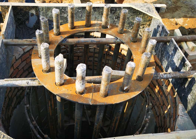 十三項(xiàng)目部承建的桃園四巷片區(qū)道路改造工程地處老城區(qū),地下水位高,基礎(chǔ)埋深較深,土質(zhì)為淤泥質(zhì)軟土,且道路兩側(cè)分布高壓電桿。施工中,項(xiàng)目部不斷創(chuàng)新施工工藝,改進(jìn)施工技術(shù),為工程的順利完工奠定了堅(jiān)實(shí)的基礎(chǔ)。為配合市政府進(jìn)行無纜化社區(qū)改造施工,需在新建路桃園四巷路口打設(shè)一處電纜鋼桿基礎(chǔ),該鋼桿基礎(chǔ)為直徑1.8米,埋深5.7米的鋼筋混凝土結(jié)構(gòu)。由于緊鄰高壓電桿,無法采用常見的基坑施工方法,經(jīng)過技術(shù)人員討論分析,項(xiàng)目部決定采用沉管工藝進(jìn)行施工。施工中,需在基礎(chǔ)位置挖設(shè)外徑2.5米、深度1米的基坑內(nèi)垂直放置內(nèi)徑1.5米,長度2.5米的企口混凝土管,項(xiàng)目部采用機(jī)械配合人工挖土的方式進(jìn)行管道下沉施工。為加快施工進(jìn)度,施工人員采用三班交替24小時(shí)不間斷施工的方法,經(jīng)過3天4夜的日夜奮戰(zhàn),順利將2根2.5米長的預(yù)制混凝土管沉入指定深度。隨后,通過安插片石穩(wěn)定管基,澆筑混凝土進(jìn)行沉管封底,待基坑底部混凝土達(dá)到規(guī)定強(qiáng)度后,按設(shè)計(jì)高程吊裝并固定鋼筋籠,最終圓滿完成了鋼桿基礎(chǔ)的施工任務(wù),為工程質(zhì)量和施工安全提供了有效保障。