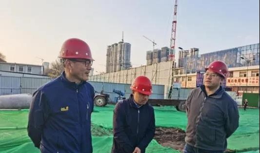 11月19日,市委住建工委書記、市住建局局長邵社教在太原市建管中心主任范永剛的陪同下赴千峰路南延建設工程現(xiàn)場檢查指導工作。二公司經理岳志強陪同檢查。