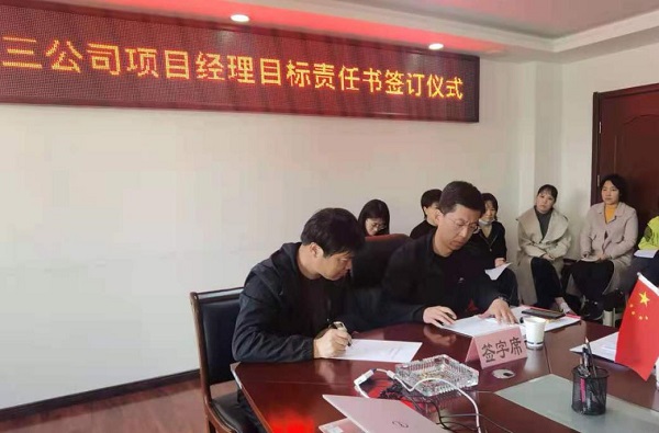 4月18日,三公司召開2021年項(xiàng)目經(jīng)理目標(biāo)責(zé)任書簽訂儀式。