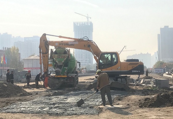 太原市政建設(shè)集團(tuán)有限公司中心街西站道路恢復(fù)工程正在進(jìn)行道路、排水工程