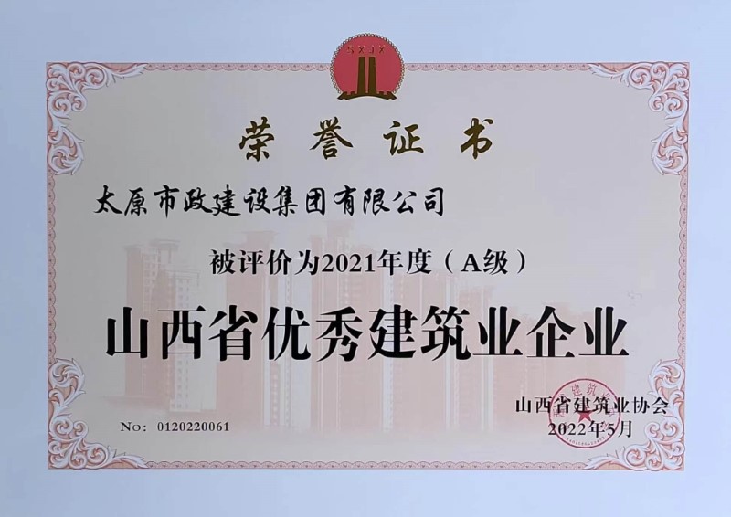 2021年度(A級)山西省優(yōu)秀建筑業(yè)企業(yè)