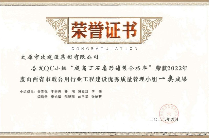 2022年度山西省市政公用行業(yè)工程建設(shè)優(yōu)秀質(zhì)量管理小組一類成果_奮發(fā)QC小組“提高丁石扇鋪裝合格率”